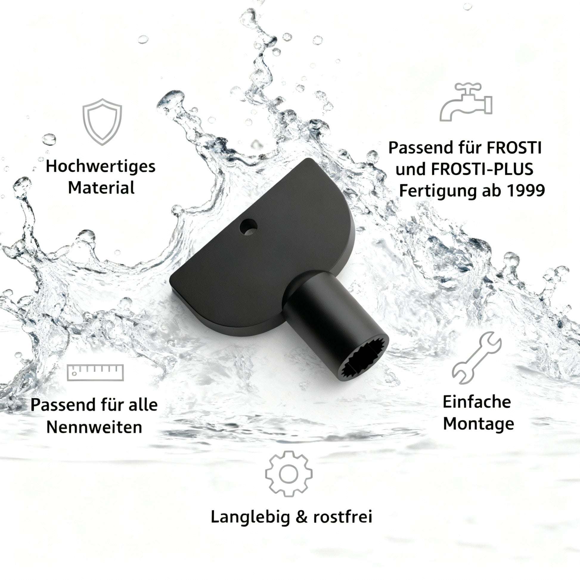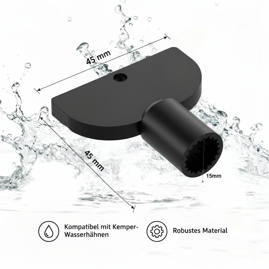 Dank der Mehrfach-Innenverzahnung ist der Steckschlüssel passend für alle Nennweiten und ermöglicht eine einfache und effektive Bedienung. Dieses Ersatzteil ist unverzichtbar, wenn Sie das Frosti Ventil oder andere Kemper-Außenarmaturen reparieren oder warten möchten.